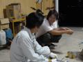 お昼からの現場に行く途中に ラジオから流れてきた天気予報。 「猛暑時々曇り」・・・。 少し離れた地域の予報も 「猛暑時々曇り」・・・。 天気予報で初めて聞いたような言い方。 「晴れ」じゃなくて「猛暑」って最近は言うんですね。 それとも昔から言ってたのかな ともあれ今日はまさしく猛暑でしたわ 熱中症も怖いですね。 さて週明けの月曜ですが週末はこれと いってたいしたネタもありませんでしたので また夏祭りに向けたかがし制作の話題でも 書きますかね。 残すところ1か月をきり少し急ピッチで 作業に取り組みだしました。 新たに同じ会から(創青塾)かがし制作担当以外の 祭りに係るメンバーも合流してくれました。 ようやく土台も仕上がり何やら積み上げています。 こちらでは相変わらず空き缶切。 集まる空き缶はほとんどビールだな・・・ そして祭りあるところにこの人あり。 とうとう頼もしい助っ人が現れましたね 空き缶の事はお任せあれと言わんばかりの自販機王さん。 久々の登場ですね しかし作業開始からわずか5分後・・・。 ありゃ〜やはり手を動かすより口を動かすのが 得意みたいですね。 まぁ賑やかでいいのですが