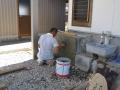 毎日同じような写真です。 はぁ〜草刈 こちらの現場はカーポートも仕上がり いつもの左官屋さんがコンクリートの補修作業。 階段の斫部の補修。 こういう作業を見るとさすが壁屋さんと言うべきか 補修前はこんな感じ。 補修後はこんな感じです。 こっちは既存のコンクリート擁壁の天端補修。 補修後はこんな感じです。 ガタガタだった昔の擁壁の天端も生まれ変わりますね。 さすが松永左官さんだ 相変わらず口は悪かったですがね この現場も明日には土間コン打てそうです。 そしてこちらも同じような写真です。 かがし制作・・・。 何やら火花まで散らしていますが まだ何を作っているのかは分かりませんね。 来週あたりから段々何を作っているのか 皆さんにも分かるようになるといいのですが