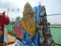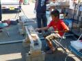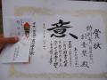 地元の祭り「さかい夏祭り」も終わり ようやくゆっくりできる時間が出来て ブログも更新できました。 まずは昨日の福井新聞から。 1か月にわたり制作したかがしコンテストの為の作品・・・。 大賞には選ばれませんでした 新聞にも掲載されてますが大賞の作品はこちら。 ほのぼのとした感じがいいね そして私たち創青塾が制作した作品をいよいよお見せします。 リサイクル率100%の『鯉の滝登り』 鱗まで空き缶一枚一枚を張り合わせ作った力作。 滝から跳ね上がる水しぶきはペットボトル。 大賞は取れませんでしたが特別賞を頂きました 賞状と現金 まぁ制作者人数で割ると何百円の報酬になるかな 祭り当日はよく晴れてくれて来場者数もまぁまぁでした。 そして創青塾のブースでは生ビールや名物の焼き鳥も販売。 創青塾のツートップ自ら焼き鳥を焼いてます 最高顧問(石油王さん)と塾長(タイヤ王さん) ブースの後方では平塾員もせっせと焼いてました。 自販機王さんもがんばって焼いてますね 息子さんも頑張って焼いて(食べて)ましたよ。 おぉ〜こちらは顔に似合わず子供相手のヨーヨーや スーパーボールすくい担当の副塾長さんだ そして私はというとこちらのブースで頑張りました。 B級グルメの「辛み蕎麦」 こちらが味の決め手の辛み大根。 今回も夕方には完売してしまいましたよ 途中いきなりの雨に見舞われましたが 最後まで夏祭りは大賑わいでした。 熱く長く続いた祭りの為のかがし制作や会場設営。 時には疲れて休みたいときもありましたが 終わってしまうと寂しいものでポカンと胸に 穴が開いた状態がしばらく続きそうです。