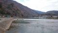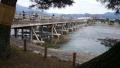 こちら福井は天気はいいはずなのに 何故か空がかすんで見えました。 途中ニュースでPM2.5の仕業だと気づき マスクをしながらの作業になりました。 道路路肩のエプロンの生コン打ち。 明日も天気次第でもう片方も。 さて今日も昨日の続きを書きます。 京都旅行2日目はベタなところで嵐山散策。 そこに近くにある「天龍寺」に。 曹源池庭園を見学。 秋の紅葉の季節にももう一度行きたいな。 そのまま竹林に。 確かに見渡す限り竹だらけ・・・。 次に渡月橋を渡りました。 たしかこの橋も災害に見舞われたんですよね。 今は穏やかだ 途中昼食をはさみ「智積院」でお庭の勉強。 利休好みのお庭だったとか。 ん〜キム兄も気に入ったのかな 今回の旅行は初日は夜からの合流で あまり見学なんかは出来ませんでしたが 実に楽しい旅行だったのは間違いありません。 来年の旅行が早くも楽しみだ