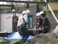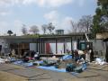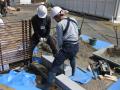 | こんにちは、代表です。 来場の人もたくさん来てました。 そこでせっかくなので『フランクフルト』ぐらい食べてみようとお昼ご飯にして、お祭り気分を少し分けてもらいました。 そのお祭りが有る為に現場前に車両が進入出来ず、、、重い石の材料を台車で運び込んだりと大変でした、、、 1ヵ月前から中国で加工してもらっていた石を敷き始めました。 <石材を職人さんが運んで据えて行きます> <大判の石材は4人がかりでも運ぶのが大変です> <搬入などに手間取りあまり進みがよくなかったのですが明日は頑張って敷き終えてもらいます> <ウッド職人さんは今日で一旦おしまい、石敷きへバトンタッチです、本当にお疲れさまでした〜だいぶ形のイメージが見えて来ました!> <高台から見た現場です> 細かな納まりや意匠は開幕してから現場で見て下さいね。 週明けは天候が崩れるそうですが、とうとう植栽や水鉢などが入ります。 開幕前にどこまでお見せして良いものか?と悩み所ですが、またお見せ出来る所までお見せしたいと思います。 明日はお客さん宅に打合せに行ってからまた現場へ向かいます。 それでは、お休みなさい。  にほんブログ村  |