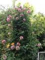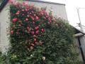 赤い蕾は開くと淡いピンクの花姿に変身します