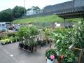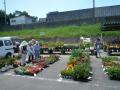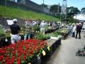 たくさんの人々が目当ての花を買おうと集まってきます 活気と熱気 観葉植物の大鉢なんかも出てます