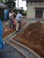 お疲れさまです 昨日の門柱はポストや表札がまだ付けられていない為 写真でのご紹介はありません 本日は那珂市 E様邸のご紹介です 担当・・・ナベさん・トビーさんそしてお手伝いに専務が参加 門柱周りの生コンを流し 庭が広い為、土止メとしてブロックを一段積む為の生コン流しを 3人で行なっていました 巾が狭い為ナベさんが一輪車で一台づつ運び流し込み 専務とトビーさんで手際良く均していました これから植栽が入りそろそろ完成です 明日から又暑くなりそうなので気をつけて作業をして下さい 施工現場のご紹介でした