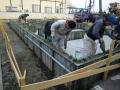 今年初のブログです 本年もよろしくお願いいたします 昨年から引き続き新築基礎工事の現場から ホッシャンさんが年末に枠の幅止めを行い生コンを流すまでの段取りを行い 本日いよいよ家の基礎となる部分の生コンを流しました お兄さん・ホッシャンさん・トビーさんで バイブレーターという物で中まで均等にしっかり流しています そして 専務が流し終わった所に高さ調整をする為の 天端ビスを置いています。 つづきまして・・・ひたちなか市 K様邸 午前中は家の周りに土をいれ、午後から丸さんが一人で アプローチ部分の作業を ピンコロを切断中 だんだん仕上がってきましたね 施工現場のご紹介でした