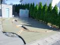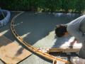 お疲れ様です 今朝は寒かったですが昼間は暖かくすごしやすい1日に なりましたね お友達にこんな物を頂きました 化粧ポーチとして使います とても器用な人で1日パッチワークをやっていたいと 言っていました。こういった趣味があるといいですね 本日の現場は ひたちなか市 S様邸 現場に行った時ちょうど残り半分の駐車場に 生コンを流している所でした 生活しながらですと一度に生コンを流す事が出来ないので 何回かに分けて打設をします 仕上げは刷毛ひき仕上げになります 今回の模様も化粧砂利が入ったり石貼りを施したりと また違った仕上がりになると思います 面取りをホッシャンさんが そしてガラスブロックの養生を取ると こんな感じに。これから仕上げのお化粧をしていきます 施工現場のご紹介でした
