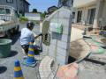 お疲れ様です いいお天気がつづいていますね 今日の現場は ひたちなか市 O様邸 先日からホッシャンさんがタイルテラス貼りの準備に こちらのタイルはタカショーのセラ ベーシック ロゼ になります。 写真では分かりづらいのですがとてもいい色合いです そしてアプローチ部分の乱張りもホッシャンさんが 今日やっとタカさんが門壁の下塗りが始まりました 2回下塗りをして仕上げていきます アプローチの仕上げと門壁・フェンス取付 完成が楽しみです 施工現場のご紹介でした