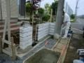 お疲れ様です 本日の現場 ひたちなか市 Y様邸 先日ブロックが積まれたところまではアップしていましたが そのつづきになります。 フェンスが付けられ 門壁のブロック積みを丸さんが担当 東洋工業のプレックスストーン3 ノヴェルボーダーを使用しています、 後日門壁にファンクションユニットが付けられました そして階段の下地が終わりこらからタイル仕上げになります 本日はあっちゃんが駐車場部分の枠組みを行い カーポートの準備も着々と進められていました 施工現場のご紹介でした