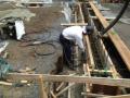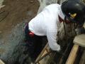 施工現場のご紹介で〜す こちらの現場は、鉄骨でつくる倉庫の 基礎コンクリートをつくっているのよ〜 お家の基礎とくらべると ずいぶんかたちが違うでしょ〜 写真の丸い四つの棒が 柱を支えるためのアンカーボルトなのよ〜 ここに生コンを流すわよ〜 ナベさんが持っている物は 高周波といって、とっても振動がすごいから 生コンをすきま無く流し込めるのよ〜 なるほど!これなら強いコンクリートが出来るな〜 そして、出来上がったコンクリートがこれよ〜 ね〜!とても素敵でしょ〜 これで鉄骨をたてる準備は出来たわよ〜 倉庫をしっかり支えてね 以上、施工現場のご紹介でした〜