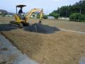 お疲れ様です 先日完成しました 水戸市 S様邸 駐車場工事の現場 1台分だった駐車場をキッチンガーデンスペースと もう1台分の駐車場スペースの確保 キッチンガーデン周りはインターロッキングを貼り明るいイメージに これから家主様がいろいろ育てていくと思います。 自分で育てたものはいっそうおいしく感じますし、 安心して食べられますね つづきまして 水戸市 T様邸 担当・・・・・専務・ホッシャンさん・ナベさん L型擁壁が設置され、埋め戻し作業が終わり 家の周りに防草シートが敷かれています 家の前は駐車場スペースにする為砕石を入れ転圧を 敷地が広いため砕石を入れる場所がけっこうあり 専務も重機でひたすら砕石を敷きます そしてホッシャンさんも重機で掘削中 もう少しかかりますが宜しくお願いします 施工現場のご紹介でした
