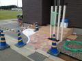 お疲れさまで〜す 本日の水戸市周辺のお天気は 台風の影響でとても不安定な一日でした〜 施工現場のご紹介で〜す 笠間市 K様邸 ガーレージ コンクリートの準備中で〜す 丸さんが基礎砕石の締固めを行い 湿気を防ぐ為のシートを敷き込み メッシュ筋を組めば 段取りの完了よ〜 後日、生コンを流し込むわよ〜 つづきまして、 水戸市 K様邸 昨日 施工したアプローチの養生を撤去して 仕上がり具合を見てみるとぉ〜 と〜ってもいい感じになっていました〜 可愛くてなんだかおいしそ〜 つづきまして、 水戸市 F様邸 先日、流し込んだ駐車場コンクリートの 型枠をはずして、 そこにホッシャンがインターロッキングを設置 玄関前では、ナベさんが防草シートを敷き込み中 そこへキレイナ砂利を敷き均して 本日の作業はここまでで〜す いよいよ完成が近づいてきました〜 以上、施工現場のご紹介でした〜