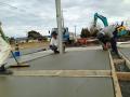 おはようございまぁ〜す 施工現場のご紹介です 水戸市 K様邸 昨日は、駐車場の生コンを流し込みました〜 タカが使ている木の道具は トンボという道具なんだって〜 と〜っても平らになるんだね〜 その後、コテでさらに平らにして・・・ 丸さん・ナベさん 均し中! その後、刷毛で慎重に引くとぉ〜 刷毛引き仕上げの完成で〜す 以上、施工現場のご紹介でした〜