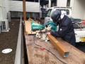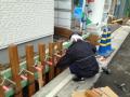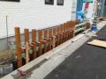 こんばんは〜 施工現場のご紹介です 水戸市 H様邸 なべさんが加工しているのは、 木目調のアルミ角柱よ こんな感じに切り詰めて〜 それをこんな感じに取り付けていくと〜 こんなに素敵なウェ〜ブに〜 きゃ〜 ステキ〜 こんな感じの仕切りも良いわよね〜