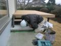 お疲れ様です 本日の水戸地方は曇り時々雨の寒い1日で〜す 昨日につづき 水戸市 I様邸のご紹介です 昨日ウッドデッキが完成し本日タカさんが 階段の取り付けを行っています まず平板という石を置き、その上に階段がつけられていますよ ネジでしっかりとめていきます 階段がつくことによってお子様も使いやすくなりますね またこの後は、お天気によってアプローチ脇の埋め戻し作業をしていくそうです 施工現場のご紹介でした
