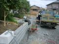 お疲れ様です 本日の現場のご紹介は土留工事のつづきから ひたちなか市 K様邸 フェンスブロックの布設までご紹介しましが埋め戻しを行い フェンス柱を立て 奥のABロック積みも終え 既存の大谷石を撤去し土留に使用 また あっちゃんは階段づくりにはいりました 本日の担当・・・・ナベさん、あっちゃんのコンビでした 施工現場のご紹介でした