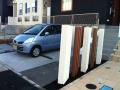 既存の擁壁にベルアートで色を付けて、天然木の板を取り付け、