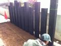 この様な、高台の工事になります。 今回、施工していただくのは、A社のTさん(写真手前の人ね 玄関から階段にかけて枕木を立てました。 そしてMさん(みえない
