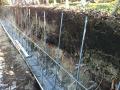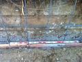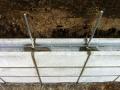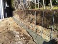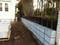 基礎の上にブロック積み上げていきます。 ブロックに横筋も入れていきます。 鉄筋のジョイント部分は結束します。