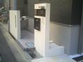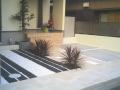 駐車場の方は車二台分のスペースを確保してあります〜 枕木は東洋のT.Yスリーパーペイブを使用 入り口から階段までは名古屋モザイクのタイルを使用してます! 植栽は手前にドラセナ・奥にメグスリノキ(目薬の木)です。