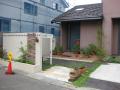 植物を活かした外構提案をしました。 道路から丸見えの玄関は塗り壁で目隠し