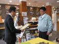 こんばんは〜!!! 緑香庭のウチヤマです。 今日はとっても嬉しい事がありました!!! じゃん (株)三富さんの施工写真コンテストで 受賞いたしました!!! わざわざ福井まで来てくださり、授賞式をしてくださいました。 社長、少し緊張気味・・・ 詳しくは明日また、アップしますね!!!