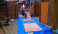 お次は新設部分の土間コンの準備・・・ 不要な土を撤去 汚さないようにちゃんと養生してやってます。