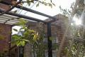藤棚を作ってもらいました。残ってる材料を使用。木目調のアルミ角柱を使用。
