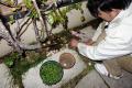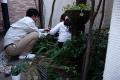 学園中のH邸の奥様に種で頂いた オルレヤ(ホワイトレース) ポットいっぱに芽をだしてくれました。今日 地植えしました。向川氏が植えてくれました。娘もお手伝い
