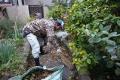 いつも剪定してくれてます小川くんと今日は他の方も手伝いに来てくれて3人でまわってくれてました。わたくしがお茶菓子を持って行った時は もう狩葉のお掃除中でした。