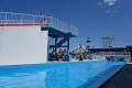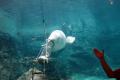 水中からトレーナーを押し上げて、豪快にジャンプ!