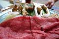 三田牛(または特選黒毛和牛)すき焼き、土瓶蒸し、焼き松茸、松茸御飯