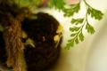 お風呂場の 出窓の シダの苔玉から かわいい キノコが芽をだして、、
