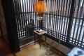 《本町筋の中央部にあり、18世紀初期頃の町家ですが、明治以降は、空家の期間も長く破損も甚だしい状況になっていました。調査の結果、今井町の大型町家の基本平面を持っている貴重な建物であることが判明し、所有者の理解をいただき、痕跡資料にもとづき当初の姿に復元しました。この建物は、古材再用、耐震、防火施設の充実をはかり再建したものです。指定民家にもおとらない建物で江戸時代中頃の雰囲気を味わっていただくこともできます。》 とあります。