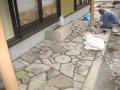 さてさて。。。 そんなバタバタの弊社ですが、T様の続きを。。。 犬走りの工事中です 番頭Sくん、御影の縁石を加工中です 沓脱石もイイ感じです