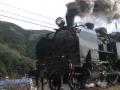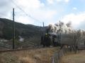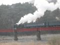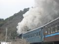 もう一枚はこちら。。。 これは、千頭(せんず)からの帰りのSLなので、 バックオーライのように、客車を引っ張ってるの。 分かるかなぁ。。 雪も降ってるねぇ