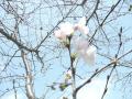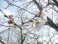 青空の下桜の開花みました