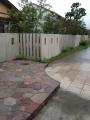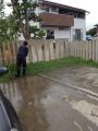 みなさんこんにちは、しかし今日も暑かったですね 会社の温度計では29℃と、そんなには上がってないですが ムシムシと暑く、気分的なもんなですかね さて、今回の現場は茨城県 石岡市 S様邸 になります。 施工後7年が経過していますので、洗浄メンテとバークチップ敷きなおしをしました。 ご覧のとおり汚れが目立っていますね。 (中庭洗浄前)