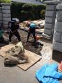 ご自宅の入り口を既存の石と合わせて、白御影で方形乱張りにしました。