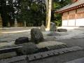 本堂脇には山門に向かったイメージの船形手水鉢