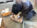 大きさのバランスと目地の調整もしながらきれいに張っていきます。