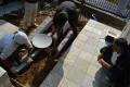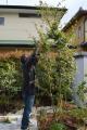 先日リガーデンが完工した水戸市 H様邸のご紹介です。 H様邸のご要望としては・・・ ・お庭を綺麗にし、使い勝手も良くしたい ・玄関前の植栽が大きくなりすぎてしまったのでスッキリさせたい ・デザインは全てお任せします との事でした。 ビフォー 下がアフターです。 自然石(石英石)で大きめなテラスを施工しました! テラスの形が複雑ですがこちらは和室前になりますので 坪庭(和の室礼)が施工されました♪ 室礼と言えば・・・・ 社長の登場です!! 大割石の施工バランスを指示しながら 必要な時には形成します。 この日は植栽施工まで一気に・・・ そして自ら剪定 こちらは玄関側ビフォー 今回、コニファーの根が広がりすぎているので 土台ごと解体しました!! 解体作業はあっという間ですね! 料理もですが、作るのに時間かかるのに 食べるはほんの10分程・・・ お家も何ヶ月もかかって造るのに 解体は数日・・・ 私の身近なことで唯一逆なのは 太るのは簡単なのに やせるのは中々難しい! どうやら人は苦労する生き物みたいです。 独り言でした(笑) 次回、H様邸完成お写真ご紹介したいと思います。 お楽しみに・・・