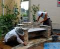 この格子の向こうには・・・、 ランボー野上ががんばって作ったベンチがあります。 お庭には石張テラスとキッチンガーデンスペース。 こちらでどんな野菜が収穫できるか楽しみです。 石英石の小端積みベンチの完成です。 自然石の経年変化が楽しみです。 設計担当 枝洋一 施工担当は、私、ランボー野上でした! よろしくお願いします!