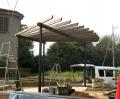 ここ3日間、潮田部長の姿が見当たらないと思ったら・・・、 こちらのお宅で特注 薪置場とパーゴラ作りに励んでました! つくば市のM様邸・・・、 アイアンとウッドで作る、特注!薪置場です。 窓があるので規格品では難しく・・・、特注となりました。 窓をかわしながら、棚をセット。 屋根材にはポリカを使用。 こちらも、特注!パーゴラです。 変則な敷地に設けたパーゴラは、リビングからのフォーカルポイントに収まるように設置されています。 潮大君と・・・、 ガッちゃん達で・・・・、 本日は、社長監修のもと・・・、 植栽をおこないます。