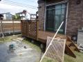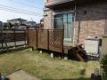 今回もウッドデッキのリフォームです。 今回はフェンスをもう一枚取り付けます。 作ってから10年以上経っているデッキですが、全体の手入れもいいのでしょう。 状態もそれほど痛みもなく、保たれています。 しかし、コーナーの手摺部分は、雨水がまわりやすく柱の内部が痛んでいましたので、 腐っているところを取り除きます。 乾燥させてから、コーキングでふさぎます。 さらに、薄いゴムシートを上に乗せましたので、今度は大丈夫だと思います。 もともとは、正面に二枚フェンスがあり、その横に階段があったようです。 今回は、階段の位置が変わり、その場所にフェンスを追加します。 笠木も新たに横の長さ全体に届くものを用意し、しっかりとフェンスを 固定できるようにしました。 塗装はオスモカラーを使用しましたが、単色では、色が多少違ってしまいます。 そのため既存の色に合わせるため、今回複数の色を用意し、現場で近い色を 調合しながら塗装しました。 完全に同じ色にすることは難しいですが、全体的には同系色となりました。 これでまた愛着をもって使っていただけると思います。