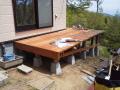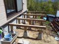 このお宅は、デッキが雪で破損してしまったので、作り変えることとなりました。 お客様自作のデッキでしたが、随分長いこと使われていましたが、今年の雪の落雪で 全体に歪みや破損が生じてしまいましたので、作り変えることとなりました。 最初は沓石のセットからです。 砕石とセメンとで固めていきます。 束柱と大引きです。 沓石のピッチも通常よりも細かくし、束柱での支えも多くなります。 床貼りです。 全体では、L型で作りましたので、建物の反対側にもデッキがあります。 次回は完成に向けての写真を掲載します。 塗料は、オスモカラーのシーダー色を使っています。 材種はカナダ杉です。 ついでに山の風景を、なんちゃって3Dにしてみました。 二つの写真を中央に合わせると、少しだけ立体に見えます。