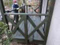 ウッドデッキの塗装です。 オスモカラーのファーグリーンという塗料で、塗り替えです。 大分イメージも変わります。 深緑なので、とても落ち着いた感じになりました。 植木や建物の色にも大変マッチしています。 新しく作るのとは違い、予定よりも塗料を使いました。 あと少しで塗料が足りなくなってしまったので、続きは来週です。