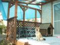 このお宅は、最初にデッキがありました。 犬を飼っているのですが、 雨風が当たるので、快適空間にしたいと・・・ パーゴラをつけて、 その上に屋根材として、ポリカボネードを載せます。 そして、側面にも風除けを作ります。