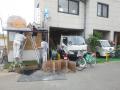 廃品利用のサイズの関係で、横なぐりの風雨には対応致しかねますが、たこ焼き屋さんにも早変わりできそうな駐輪場。