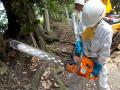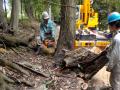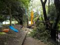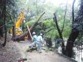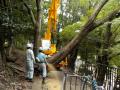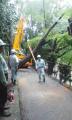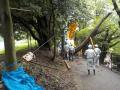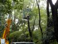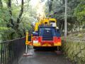 今年、弊社は「伏見区中部」の公園の年間管理させて頂いておりますが、台風や強風で木が倒れる事がしばしば・・・ 早くなんとかせねば〜 ![]() ![]() ![]() で・・・想像以上に通行される方が多く、京都トレイルコースが中断されているという事態から、休日返上での緊急作業となりました。 「空師」と呼ばれる危険木の処理をご専門にされる「(株)エコグリーン京都」さんにご協力をいただき、狭い歩道に神業的な運転技術でラフターを乗入れ作業開始です。 倒れかかっている樹木にワイヤーを巻き付け、周囲の樹木6本に放射線状に引っ張ります。ラフターの先についてる特製ゴンドラに乗った方々が、先端の幹を徐々に切断して行き、倒木の危険がなくなる高さにします。 軽々と持っておられるように見えますが、とてもパワーのあるチェンソーです ![]() 2本のクヌギの株立ちでしたが、倒木1本を伐採すると、もう1本も支えをなくし傾き始め、倒れる危険性が出てきましたので、2本とも伐採させて頂きました。 いやいや・・・無事作業を終えられて良かったです ![]() 伐採作業中は、通行止めで大変ご迷惑をお掛け致しました。。。 |