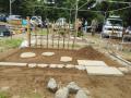 四ツ目垣のシュロ縄を結ぶ練習台も完成〜